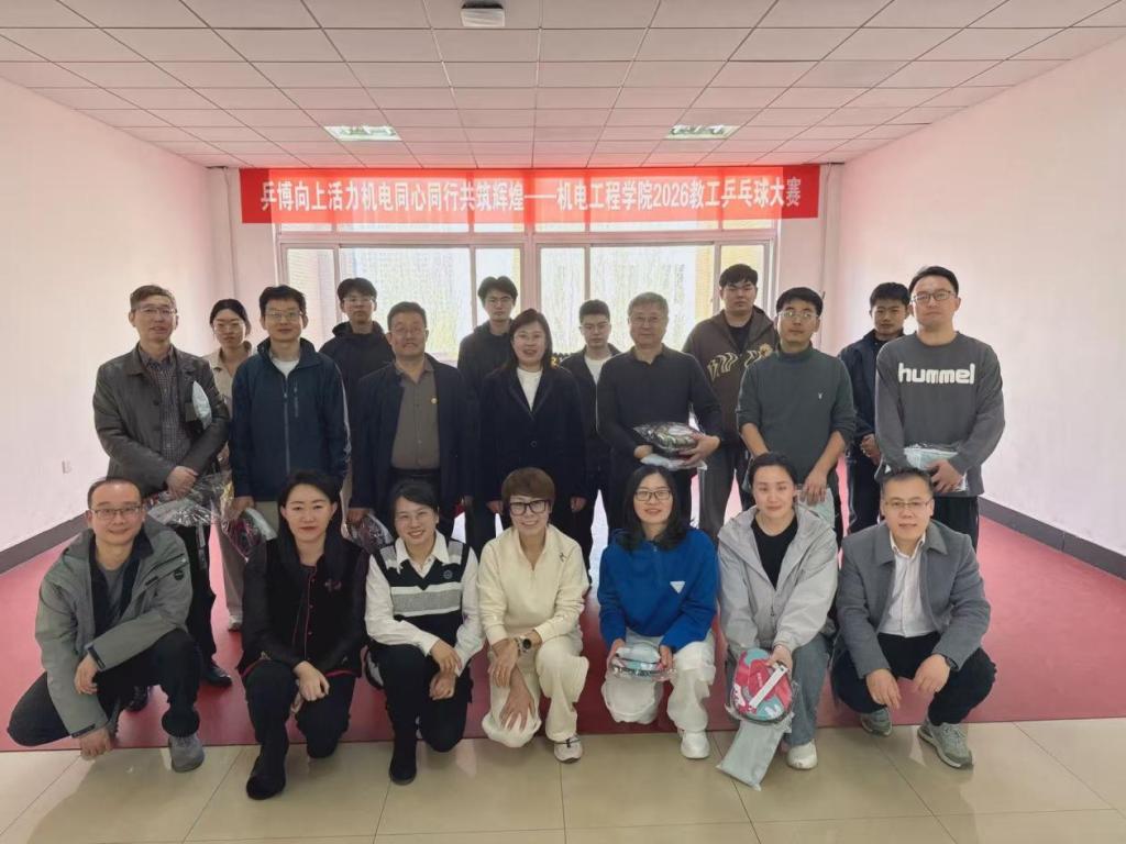 为积极响应校院关于丰富教职工业余文化生活、提高身体素质的号召,营造积极健康的工作氛围,机电工程学院于 2026 年 4 月在机械馆五楼职工之家成功举办了“乒”出活力·“乓”礴精彩——2026 年乒乓球混双系列赛。